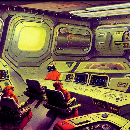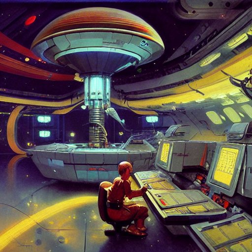 Retrofuturistic space station navigation room, detailed intricate sci-fi oil on canvas by John Berkey James Jean Syd Mead J.C. Leyendecke Norman Rockwell Marc Simonetti Artstation 4K