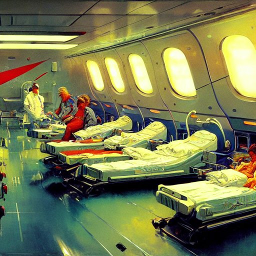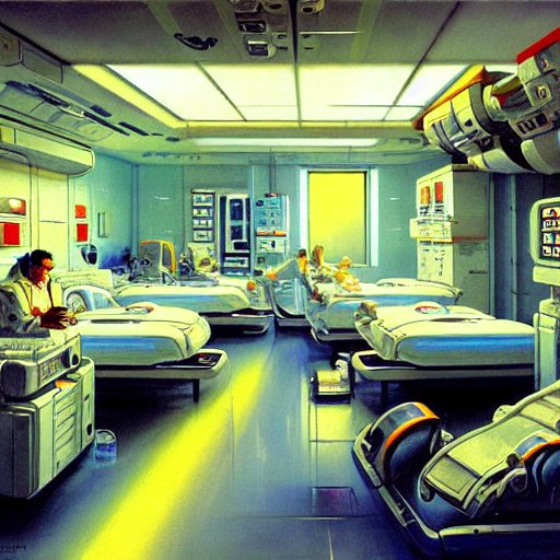 Retrofuturistic space station hospital room, detailed intricate sci-fi oil on canvas by John Berkey James Jean Syd Mead J.C. Leyendecke Norman Rockwell Marc Simonetti Artstation 4K