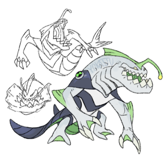 The issue with Ripjaws is that its not that interesting as a hero. Fish/Water powers normally aren't popular. I had to make a fish interesting. So I made her a naga-mermaid. Also considering giving her a Hydro Pump style of attack. The head itself also took several tries. #Ben10