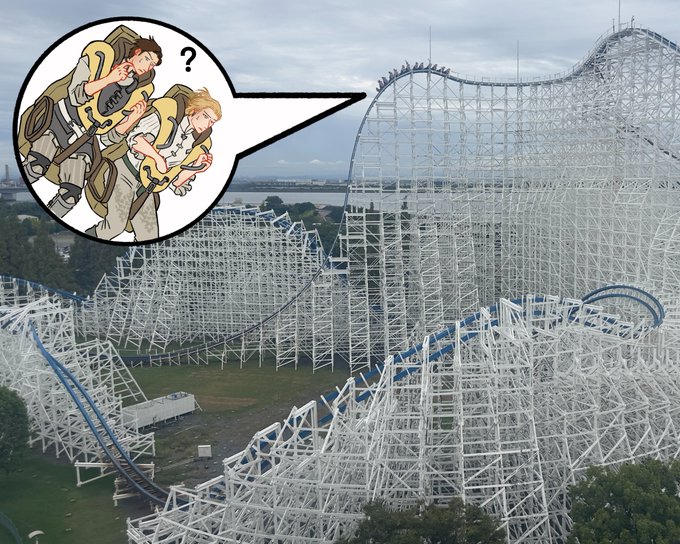 Day 3 - Coaster Enthusiast #AemondTargaryen and, tagging along on Alicent’s orders, his normie brother #AegonIITargaryen (thanks for the headcanon Ewan) at Tokyo Dome City’s Thunder Dolphin Rollercoaster