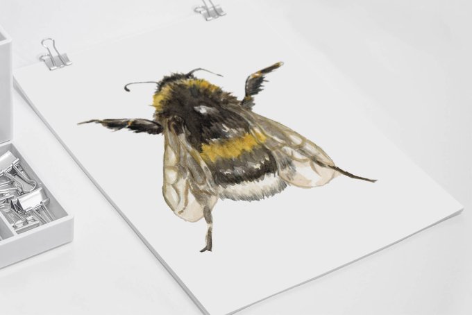 This cheerful watercolour painting of a Bumble #Bee, painted by our illustrator Klara.