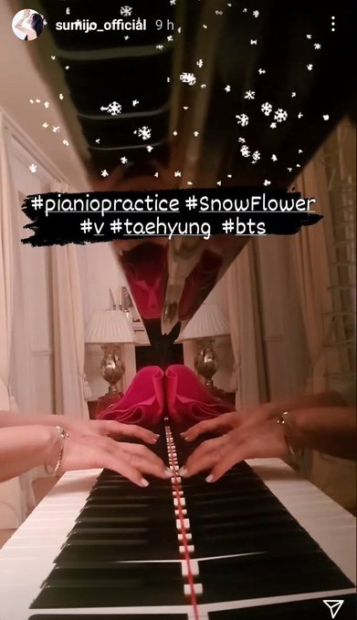 [Instagram] La premiada soprano coreana Sumi Jo subió a sus stories su interpretación en piano de Snow Flower de Taehyung, más una foto.