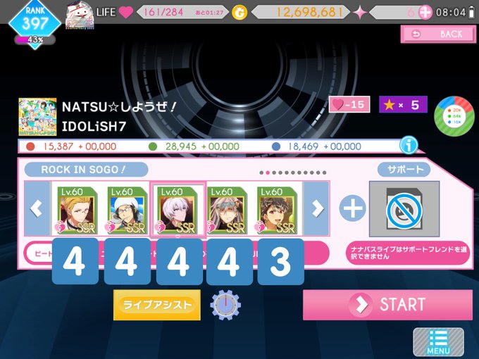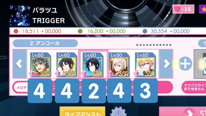 アイドリッシュセブン、ナナパスWEEKLY9月4週目、Dis one.、サビは赤少しからずっと緑。まぁあと23時間で10月版に切り替わるんで今更上げても意味無いけど、スクショとか恒常SSR縛り動画とか撮ったんで供養させてください。しっかしラスディメ天、こう球数多いとS4でも半AUTOレベルで強いな(ヽ´ん`) https://t.co/NY96BfDBLo