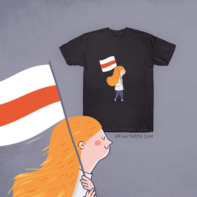 Supporting #Belarus can now also be fashionable - the well-known Belarusian illustrator&activist Vola Kuzmich (https://t.co/uAdOSnI75j) designed T-shirts for the current protest movement. She wants to donate the proceeds to "good people"