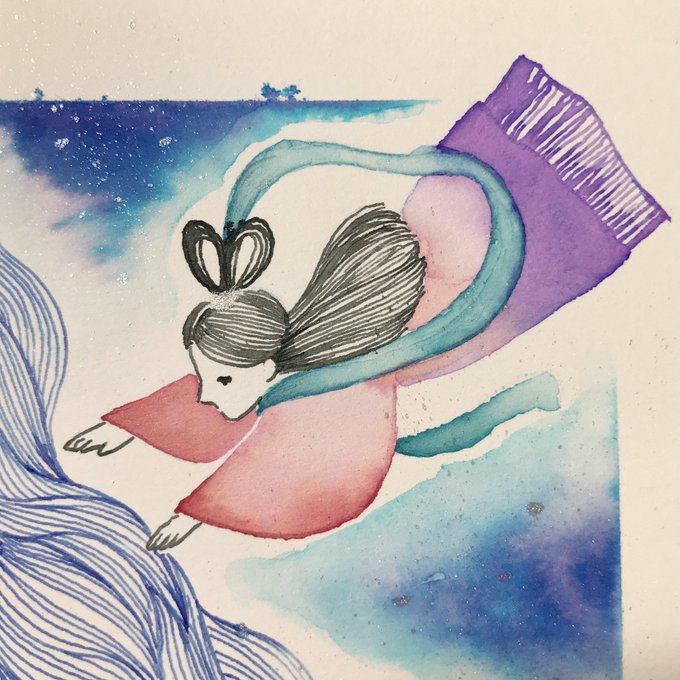 今日は仕上げに顔彩の銀を散らしました。インクのラメとはまた違う光り方をします。