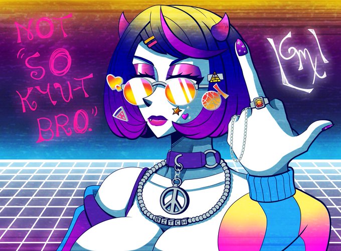 Durante o tempo sem PC , me veio essa ideia da Kurumu mais "Aesthetic". Fiz uma versão Vaporwave e uma PopArt pra me aventurar um pouco
