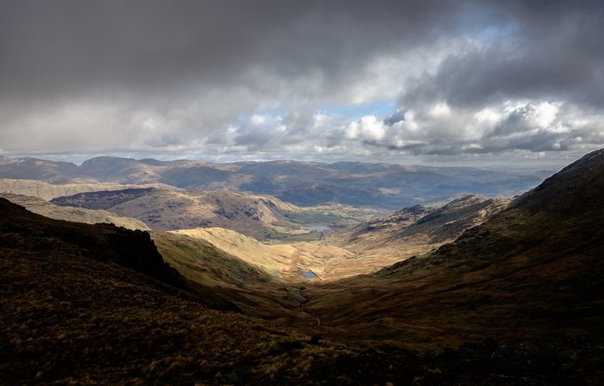 From a wander over Wetherlam, this time two years ago: looking down Little Langdale, and a glimpse of Scafell