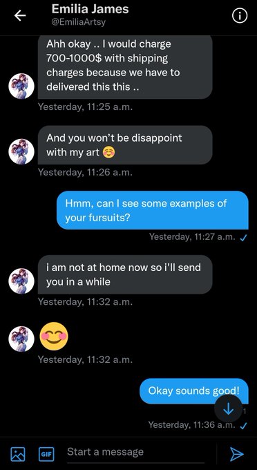 @HoneyedHeaven #ArtistOfTwitter I need your attention please while #commission anyone must check his twitter profile or examples currently @Xinyu38283062 stealing arts to show payees and claim herself #ScamAlert #furryfandom #anime