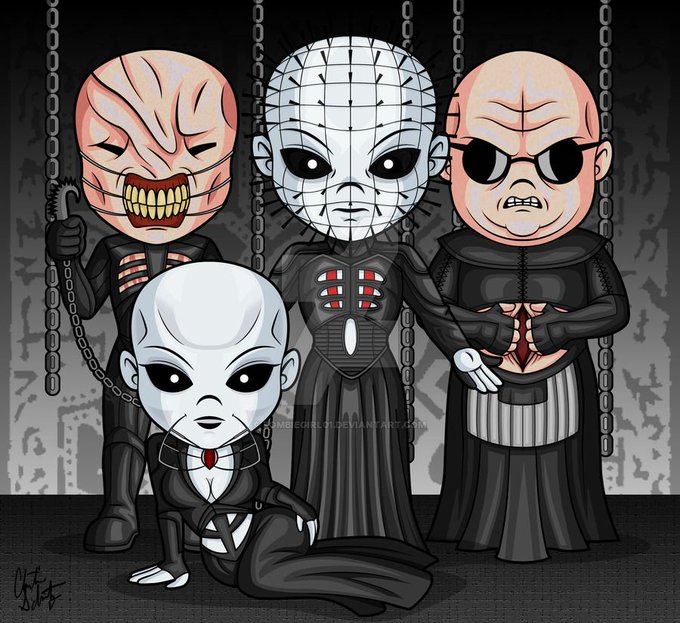 @1carolinagirl Happy #ScarySaturday! These guys just arrived to raise some hell in Horrortown. Hellraiser Cenobites Chibi art by zombiegirl01. ⛓🖤⛓