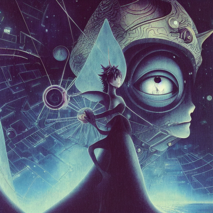 Prompt: "Void mechanisms by Ciryl Rolando, oil on canvas" (SimulacraBot diffusion)