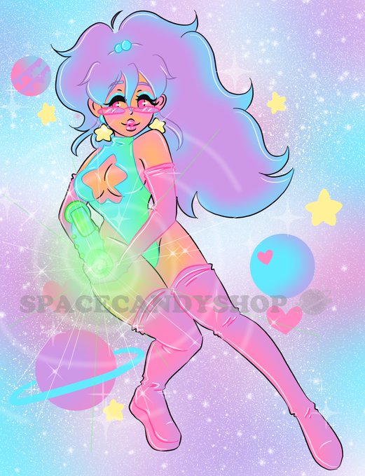 💫Meet Star Shooter💫She’s an intergalactic bounty hunter chasing down Space Girl and Alien Babe. She’s clumsy and easily flustered. She loves 80s colors and has a HUGE crush on Alien Babe⭐️ #oc #spaceshooter #digitalart