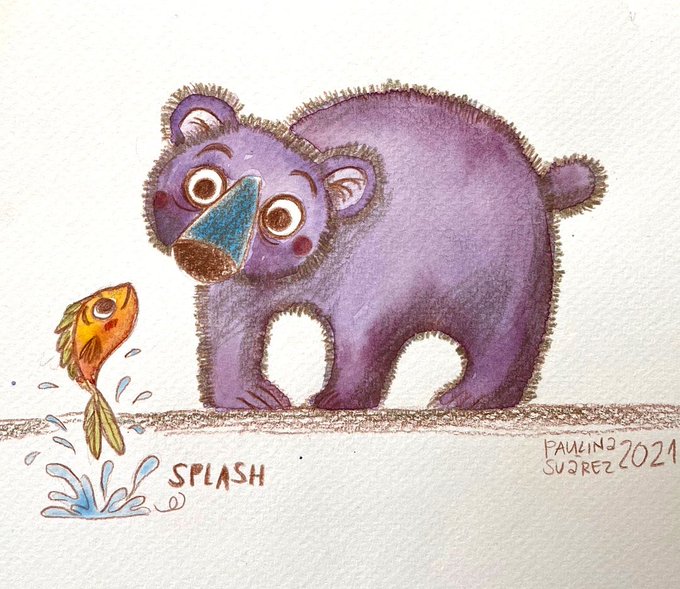 Day 5 of #childhoodweek2021 challenge “SPLASH” #childhoodweek @Blick_Art #kitlit #illustration #animal #childhoodblick