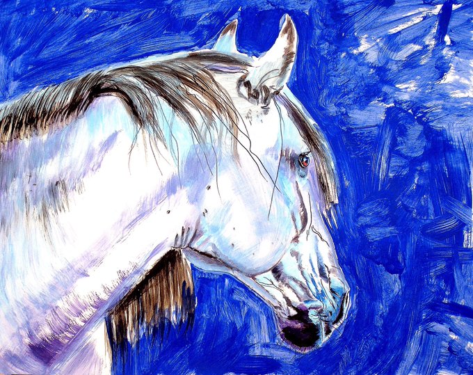 ”Blue Splash” 19 x 24 inch ink and acrylic on paper #artist #equestrian
