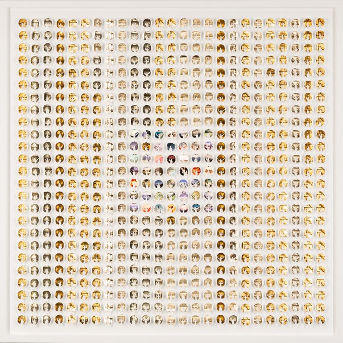 Intermission 1 by Mat Kemp, 104 x 104cm. Medium: Recycled nespresso capsules and subbuteo figures. Shown here with internal LED's off, internal LED's on, in a dark room with internal LED's on, and close up detail view. To be shown in New York at the end of March - we can't wait!