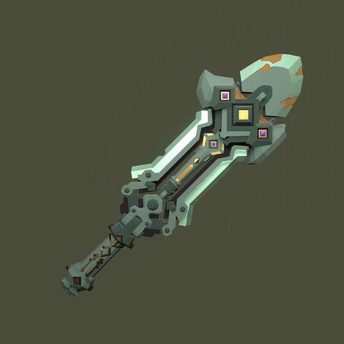 I found @Baldinosaurus's amazing #Swordtember2021 entries, and I knew I had to model at least one of them! So, here's a #lowpoly rendition of day 11: #Dwarven, modeled and rendered with #Blender3D (2.954 faces).