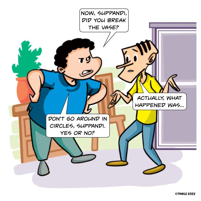 When talking to Suppandi, never say things in a "roundabout" manner!