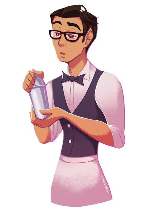 My drawing for @Cardlinish 's Talktober exercise yesterday (Sleepy Bartender)! I hope to do even more for Talktober this year, but for now it was really fun to draw this sleepy bar boy 😊💜 #artistsontwitter #drawing