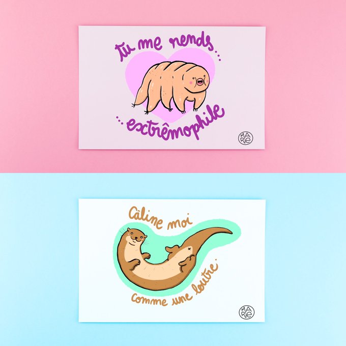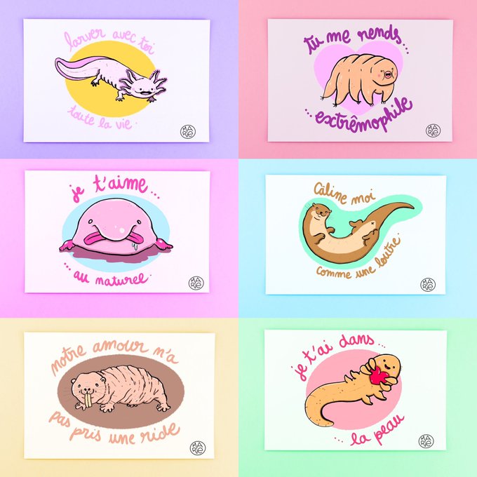 🚨✨Je lance ma boutique en ligne ! https://t.co/Fieoi5tf7Z Vous pouvez vous y procurer mes prints déclarations d’amour d’animaux moches ! 6 espèces dispo, chaque dessin est signé par mes soins. Vous êtes plutôt Tardigrade, Axolotl, Blobfish, Loutre, Rat taupe nu ou Acarien ?