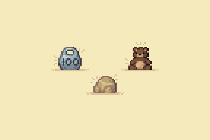 A mammoth and a rock are #ThingsThatAreHeavy, but does a raptor count? I just wanted an excuse to draw some sprites for the #ThrowBigRocks jam.