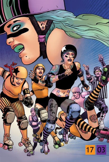 Final #PortfolioDay selection featuring the amazing colour work of @YelZamor. Our @rollergrrrls project showcases a different approach by Yel and I can't thank them enough for their continued support and input. My favourite collaboration. #rtollerderby #thisgirlcan #WomenInSport