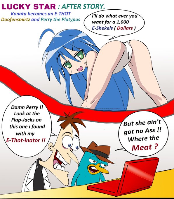 #Crossover #Comic. LUCKY STAR : AFTER STORY. Konata Izumi becomes an E-THOT entertaining Doofensmirtz and Perry the Platypus. Which anime girl should draw next ?