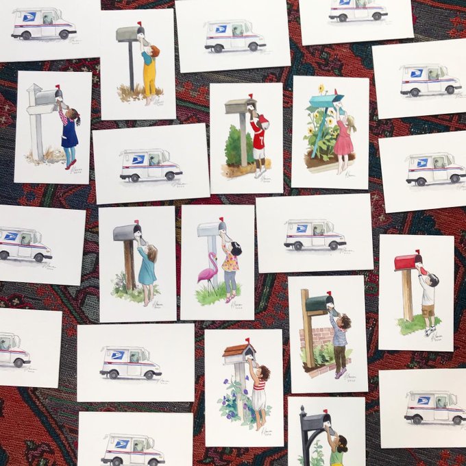 This bunch of little USPS-themed sketches is ready for #kidlitartsurprise. thank you @ohtruth for organizing and all of you for supporting your indie bookstores and the USPS!