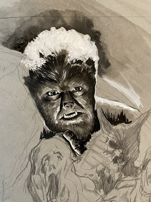 Inktober day 1: The Wolfman (1941) starting off with a classic and so far so good! #willshorrortober #horrormonster #ink #inkbrush #horror #horrorlife #creature #thewolfman #artoftheday #horrorart #willpottorff #universalclassicmonsters #inktober #inktober2021