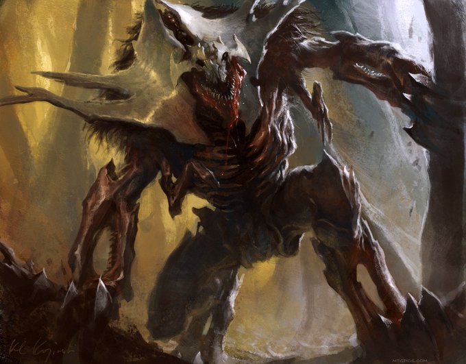 Also, off topic, but I feel like you'd really enjoy Magic the Gathering's Phyrexians - villainous, body horror, cultish stuff, fusion of flesh and machine