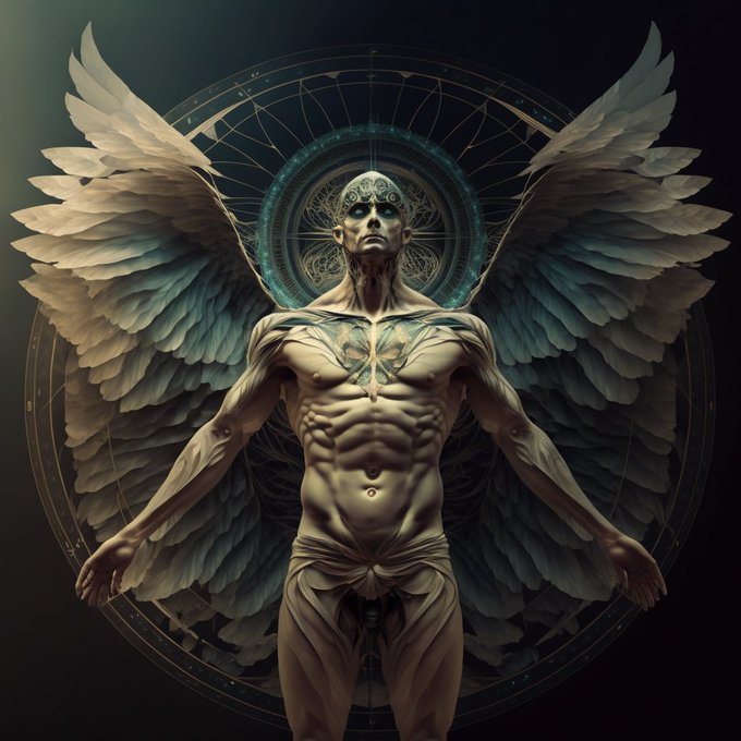 Vitruvian Angel 1/2 #midjourney #midjourneyart #midjourneyAi #AIart #imagesynthesis #horrorart #horror #Angels