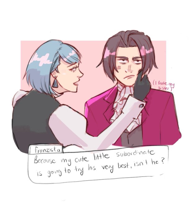 Franziska would totally pinch her "little" brother's cheek #AceAttorney #aceattorneyinvestigations #FranziskaVonKarma #milesedgeworth