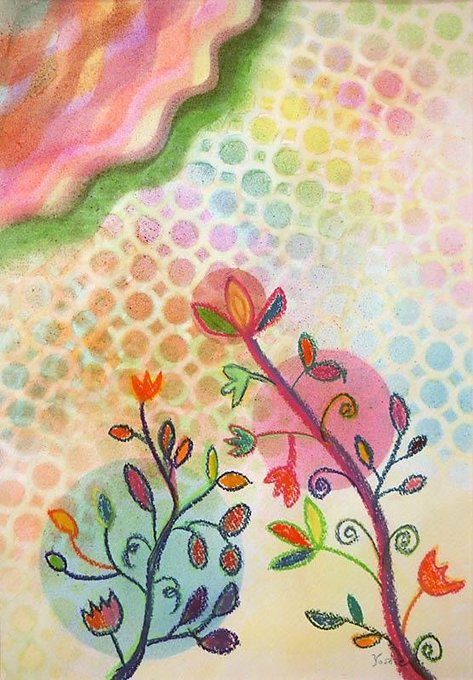 蜜蜂の巣から取られる蜜蝋を使った絵画。自然や日常からインスピレーションを得て具象と抽象のあいだを行き来する作品を制作。