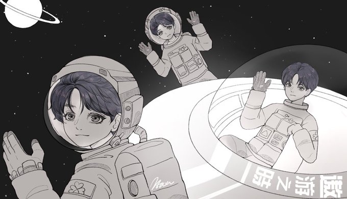 New line art!!✍ He's karry wang from tfboys, really love him and his work!! Original pic below!! He's so cute~☺💙💙
