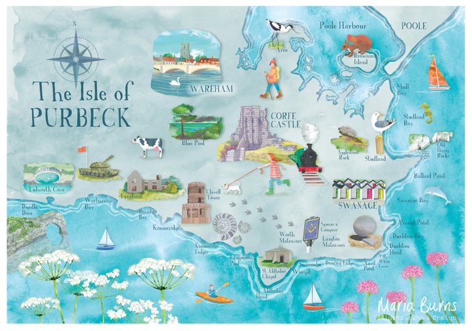I have finally completed my illustrated map of Purbeck, Dorset! You can order a print from my Etsy shop https://t.co/VsAKi4ICOO