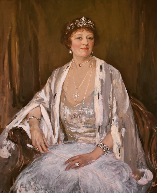 Lady Alice Evelyn Mahon painted by Sir John Lavery in 1932 which is on display in Westport House, in Co. Mayo. Lady Alice was born in March 1877, the daughter of the 5th Marquess of Sligo, Lord Henry Ulick Browne. Lady Alice married John Fitzgerald Mahon 1898 & lived until 1970.