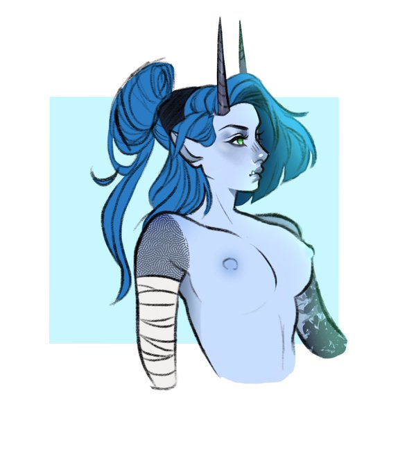 Tiefling I made a few months ago~ ❄️The Wintersleep❄️ (yes she insists on adding “The”). #dnd #dungeonsanddragons #dndart #artist #artistsontwitter #art #tiefling #oc