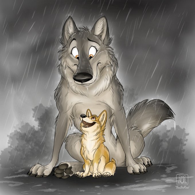 Drew these guys last year. Zeus (corgi) and Xandir (wolf). 😏 Still wanna draw more of them and give them some story #friendship #wolf #corgi #furryart