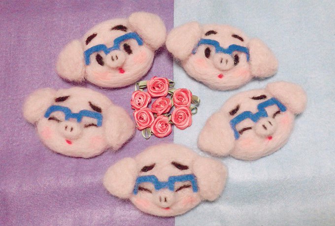 fie様(@ocha_neko)のヴィクトルコーチのイラストが余りにも可愛くて💕フェルトアップリケ制作の許可をもらって作らせていただきました。最初の写真がfie様のヴィクトルコーチのイラストです✨原画のフワッとした可愛らしさが表現しきれませんでしたが、作っていて楽しくて幸せでした!😆