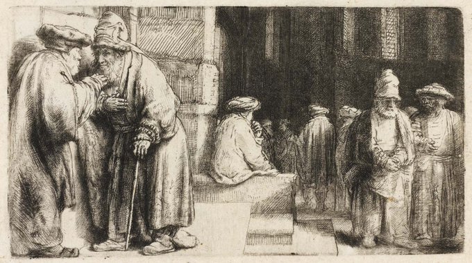 Jews in the synagogue. Rembrandt Harmensz. van Rijn (Dutch, 1606-1669). Etching, 1648. #YomKippur