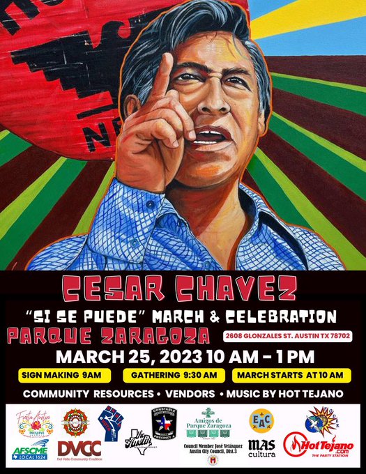 We are PROUD to have the support & participation of @AustinISD @DelValleISD & @ManorISD in this year’s Annual ¡Sí Se Puede! César Chávez March & Celebration Saturday, March 25, 2023, 10am -1pm, Parque Zaragoza, 2608 Gonzales St., Austin, TX 78702, join us!