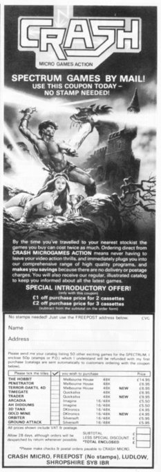 I love these old computer game ads. Here’s 3 from Aug 1983. 2 for #ImagineSoftware & 1 for #Crash before it became a proper magazine. #ZXSpectrum #Commodore64 #RetroGaming