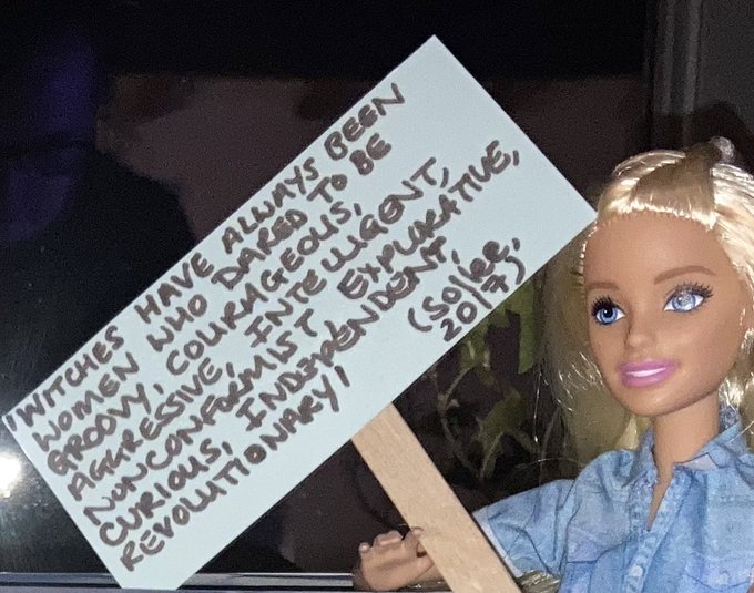 Art Activist Barbie @BarbieReports is thinking at the intersection of art history and contemporary fiction this evening. #AABflashmobday #witch @junodawson @megiddings