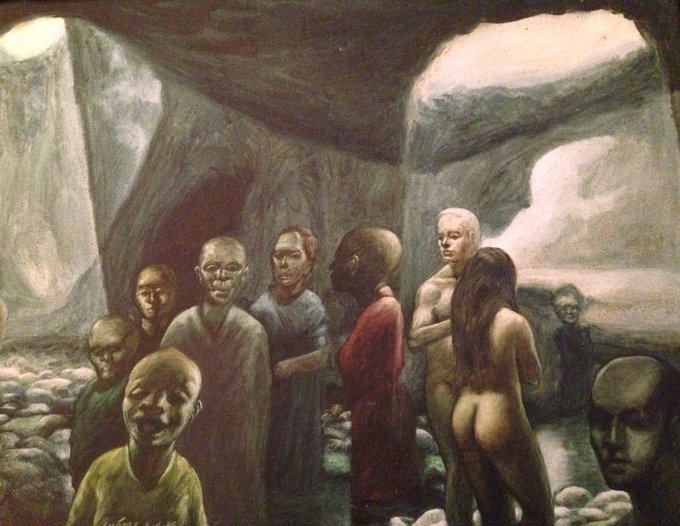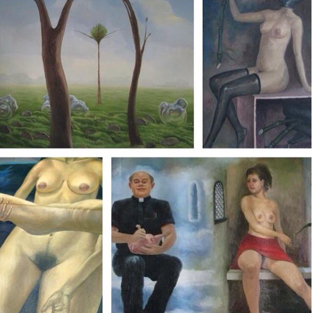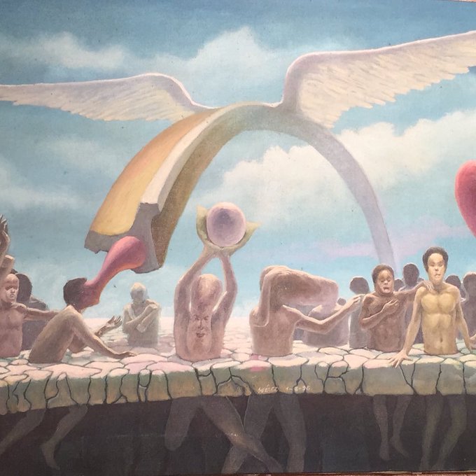 @jerrysaltz who is this at #ArtBaselMiami pre party with @klausbiesenbach ? Detail #painting by #CarlosAriel #abmb