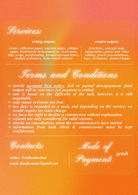 @tsquarelang Hiii I'm Fika I'm open for both art and acad comms💖💖 forte is any write ups<3