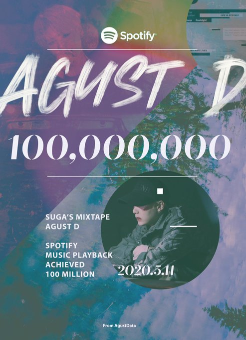 “AgustD” has surpassed 100 Million streams on Spotify🎉🎉congratulations!!