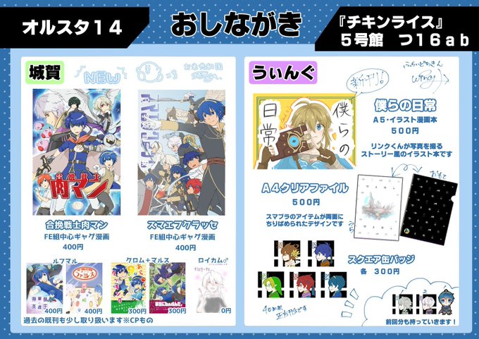 今回はうぃんぐちゃん( @smashbroswing )との合同サークル『チキンライス』で参加致します。