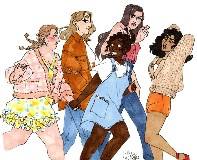 I've slacked off scanning/cleaning and posting my art to twitter again, have a doodle of my witches + the rest of the coven from back in April. The girls are named (in order of the 2nd doodle) Madalena, Lurdes, Beatriz, and Josefa, and the woman with the shawl is Amália ✨