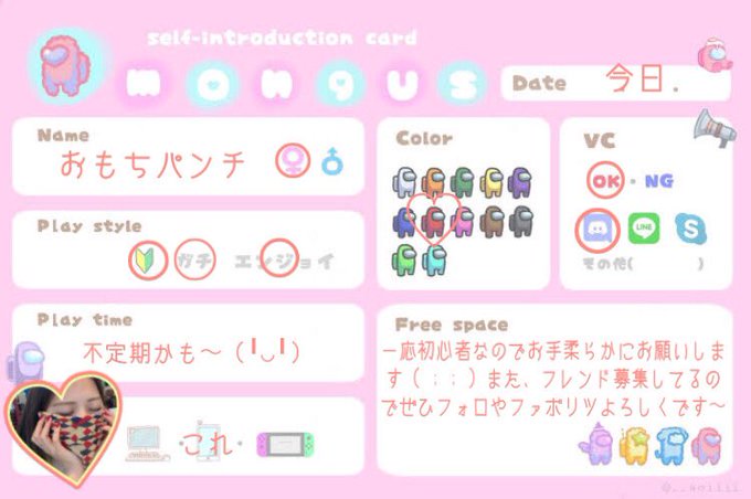#AmongUs自己紹介カード #アマングアス募集 #アマングアス自己紹介 #AmongUs募集 #AmongUsやってる人と繋がりたい #アマングアス自己紹介カード #AmongUsフレンド募集