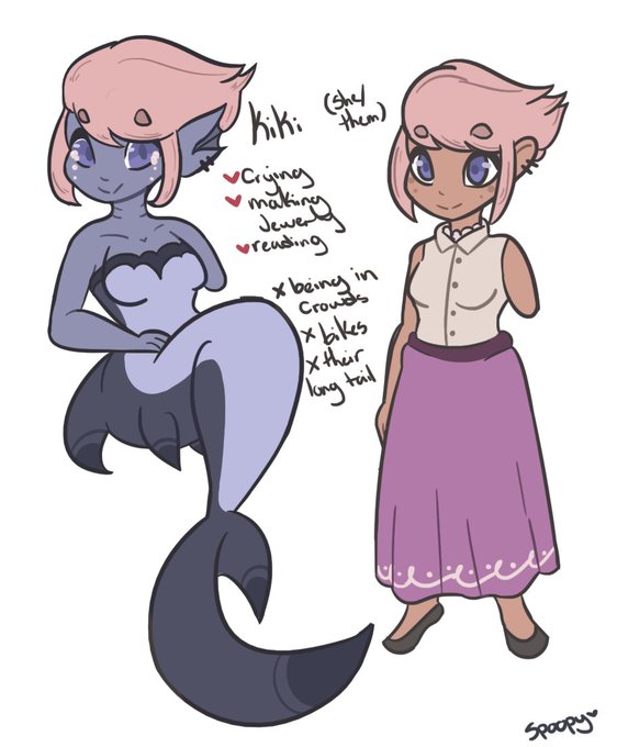 So I just finished my almost at the deadline entry being qiqi for @KenneDuck 's contest, meet Kiki she's a mermaid based on a thresher shark.