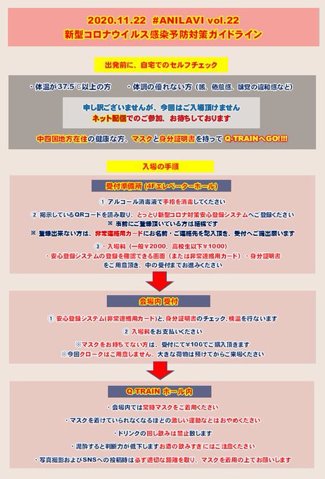11/22(日)#ANILAVI まであと5日!ここで今回の新型コロナウイルス対策ガイドラインをお伝え致します💡