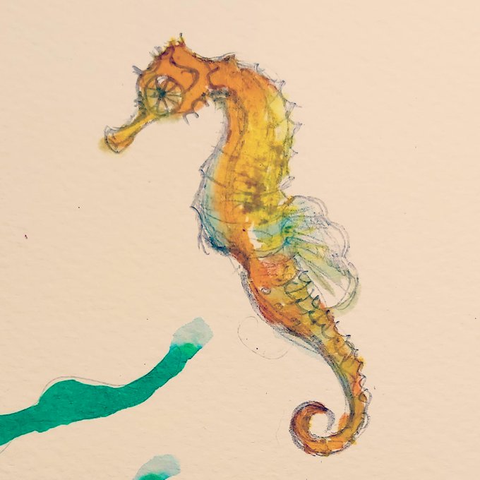 Meet Ava the Seahorse 🦄 🧜♀️ #artfuldailychallenge today #seahorse #inksketch #drawing #sketchbook #sketch #childrensbookillustration